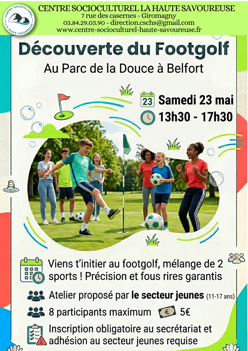 23 mai : Découverte du Footgolf (11-17 ans) de 13h30 à 17h30