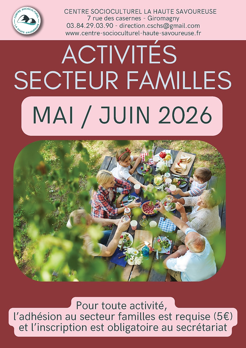 Mai à Juin 2026 : Activité secteur familles